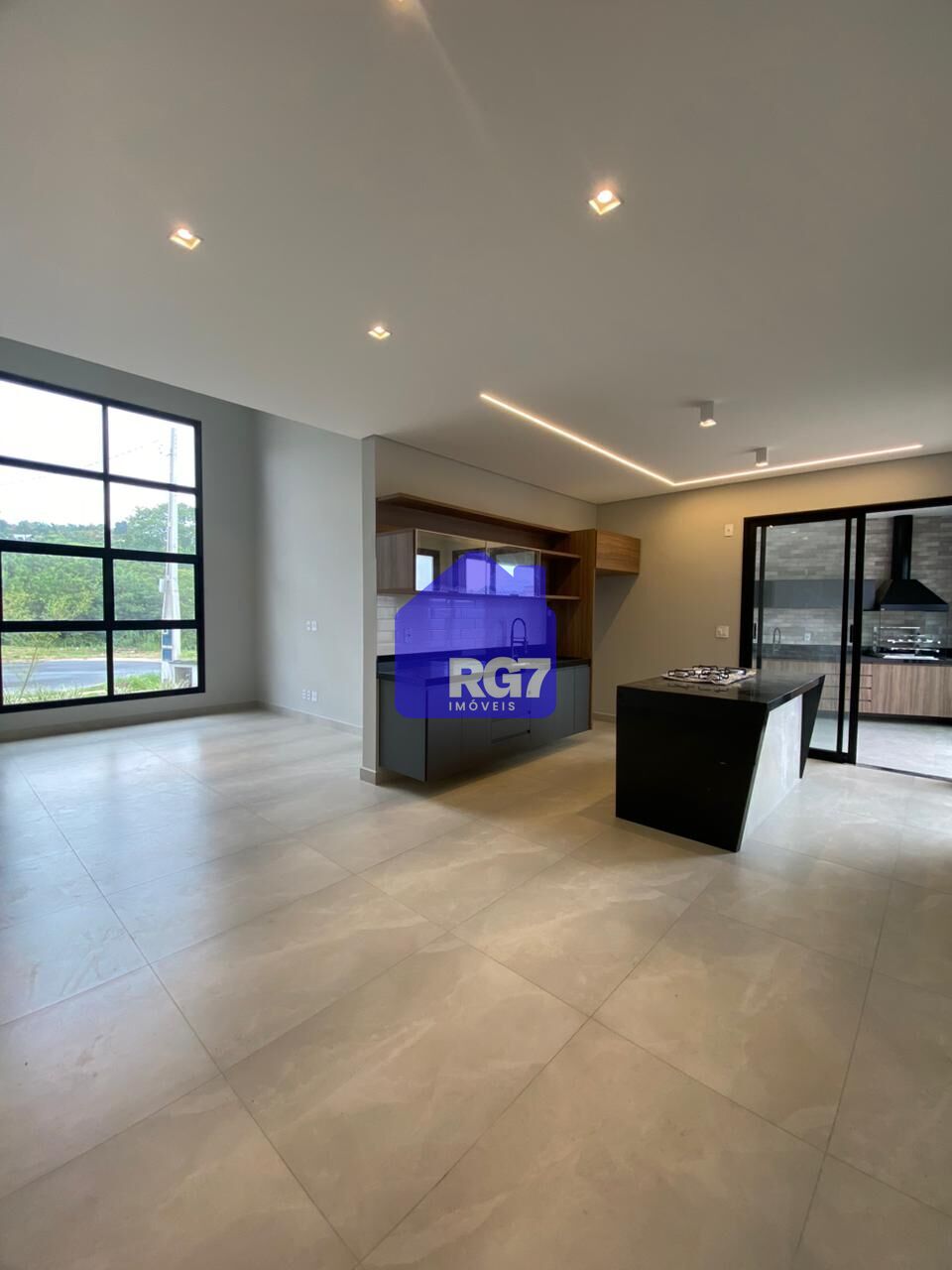 Sala de estar, jantar e cozinha integrados