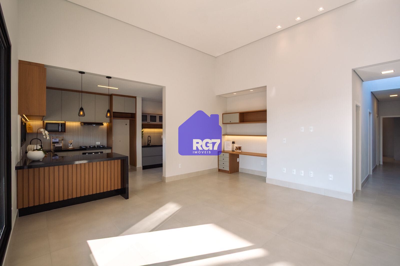 • Escritório integrado à sala, ideal para home office.